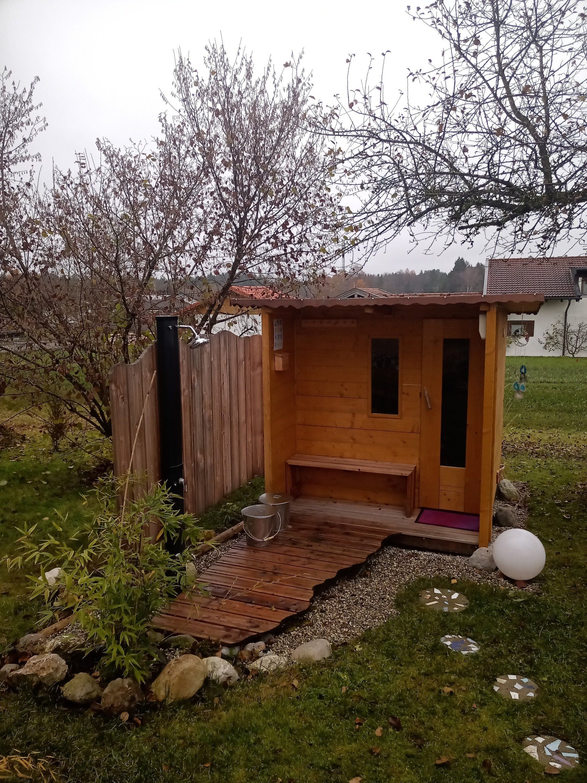 In unserer Gartensauna kannst Du dich schwitzend, von köstlichen ätherischen Düften umschmeichelt, ganz deiner Entspannung hingeben.